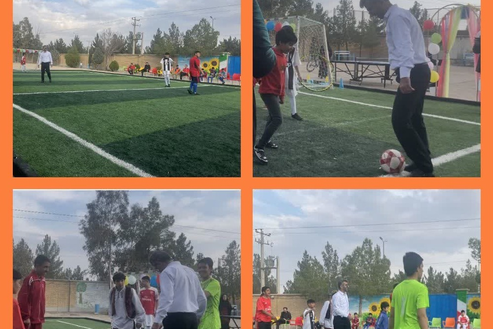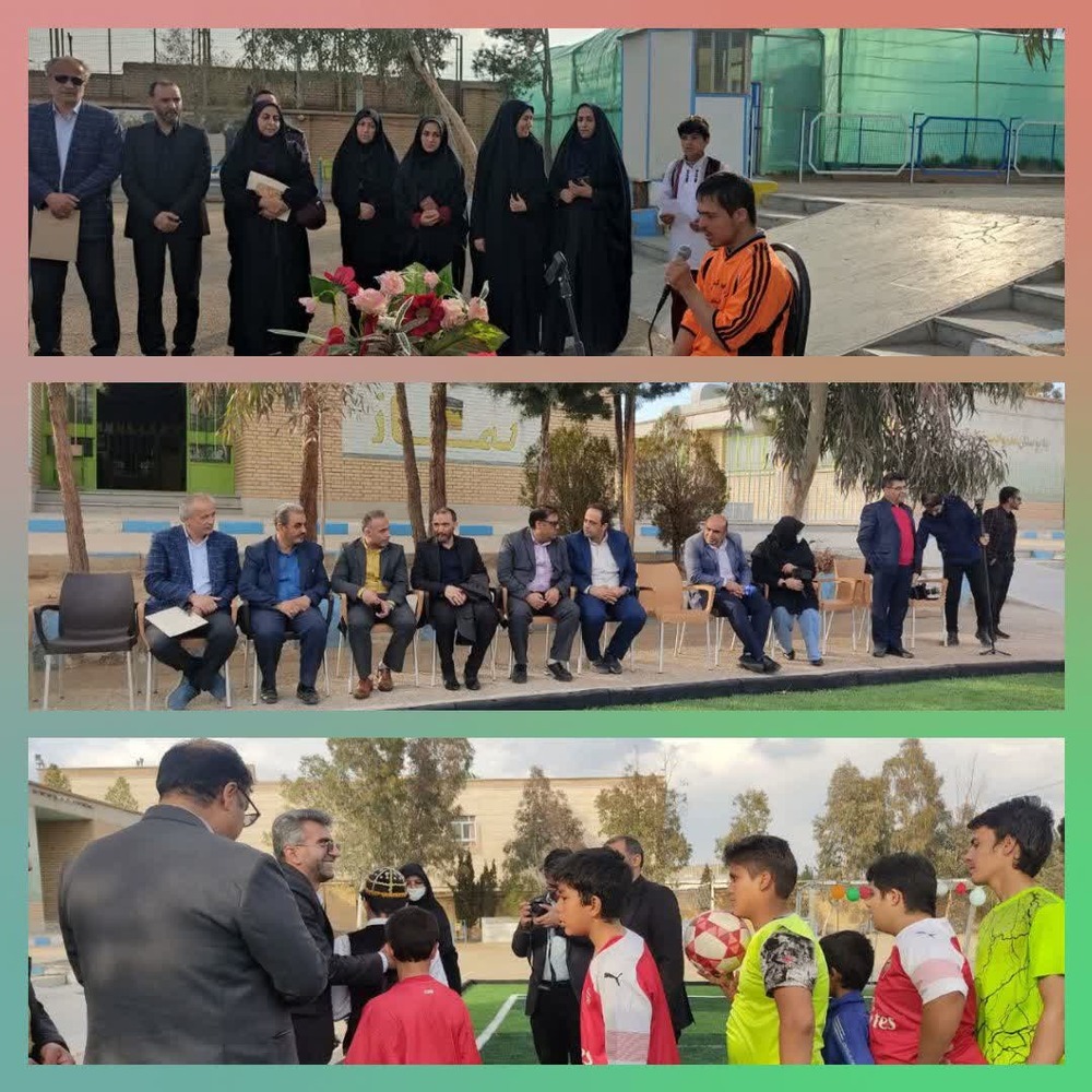 نکته جذاب این آیین، بازی فوتبال مدیرکل (دکتر شریفی) با دانشآموزان استثنایی در زمین چمن تازه افتتاحشده بود.