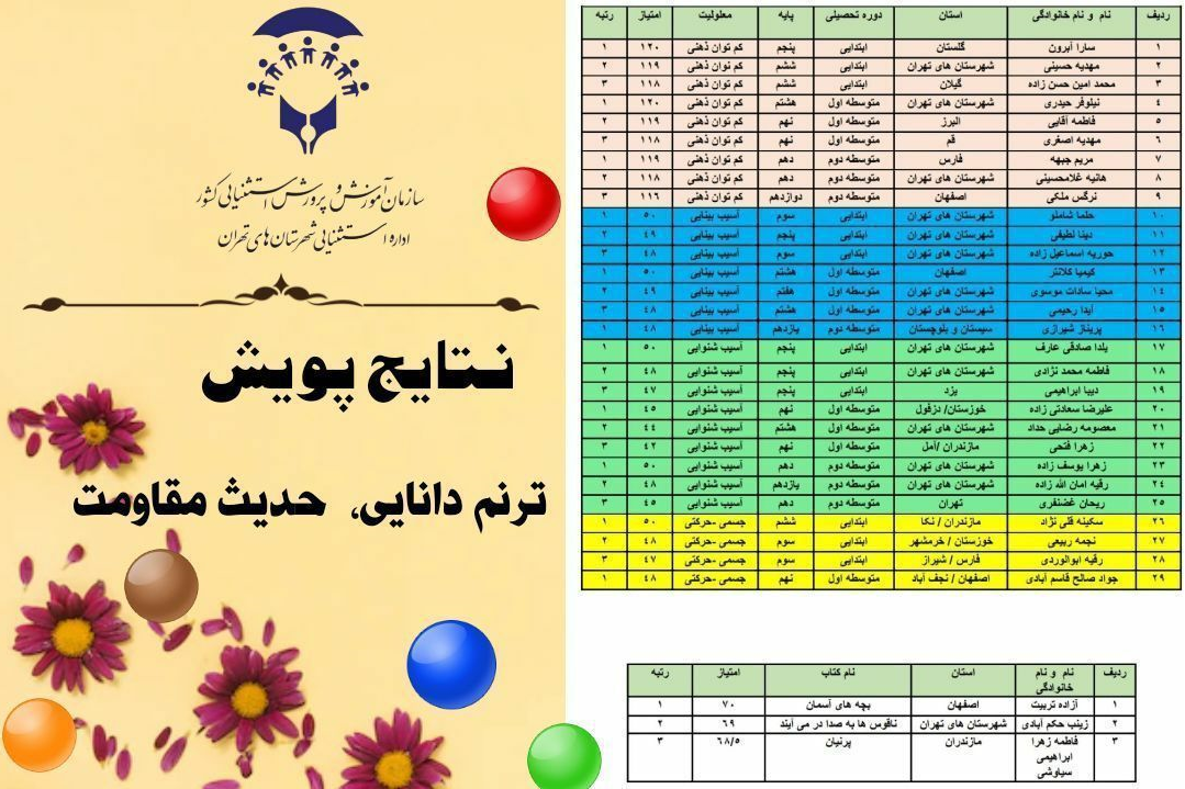 نفرات برتر دومین پویش کتابخوانی ترنم دانایی( ویژه دانش آموزان با نیازهای ویژه و کارکنان آموزش و پرورش استثنایی) اعلام شد:
