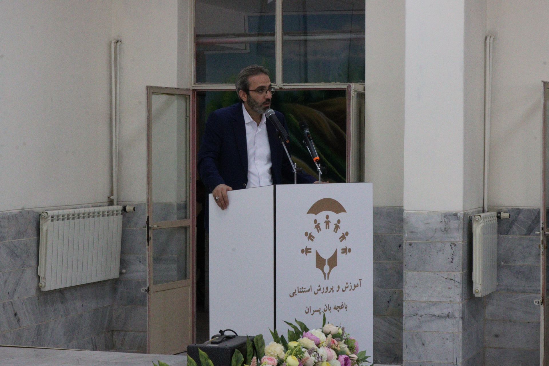 در ادامه، سلیمانی، رئیس آموزش و پرورش استثنایی استان البرز گفت: همکاران ما در آموزش و پرورش استثنایی استان البرز به بیش از ۲۰۰۰ دانشآموز خدمترسانی میکنند. آموزش هر یک از هنرهای سرود، نمایش که در اینجا به نمایش گذاشته شد، برای این دانشآموزان چند برابر حالت عادی زمان میبرد، اما معلمان ما با صبر و تلاش و دلسوزی دانش آموزان را هدایت میکنند تا به یک خروجی مطلوب برسانند.