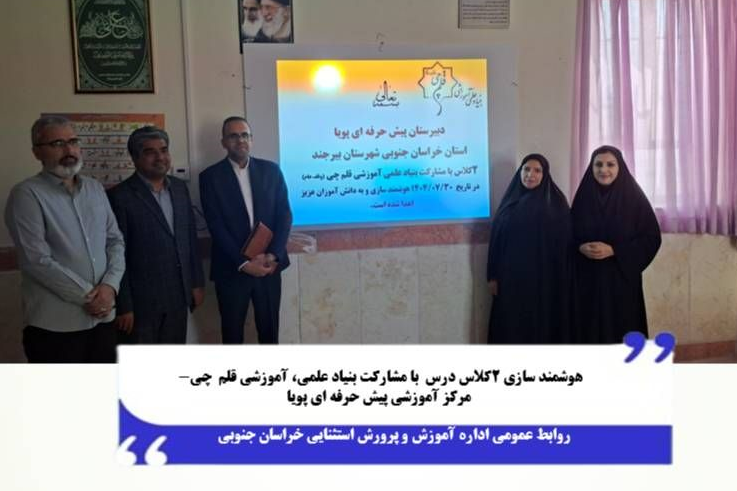 به گزارش روابط عمومی آموزش و پرورش استثنایی استان خراسان جنوبی؛ امروز با حضور طیبی معاون پژوهش،برنامه ریزی و توسعه منابع اداره کل آموزش و پرورش، امینی رئیس اداره امور رفاهی و پشتیبانی، ماندگار رئیس آموزش و پرورش استثنایی استان، یوسفی کارشناس تحقیق و پژوهش، صالحی مدیر آموزشگاه، ۲کلاس درس مرکز آموزشی پیش حرفه ای پویا با مشارکت بنیاد علمی آموزشی قلمچی هوشمندسازی شد.