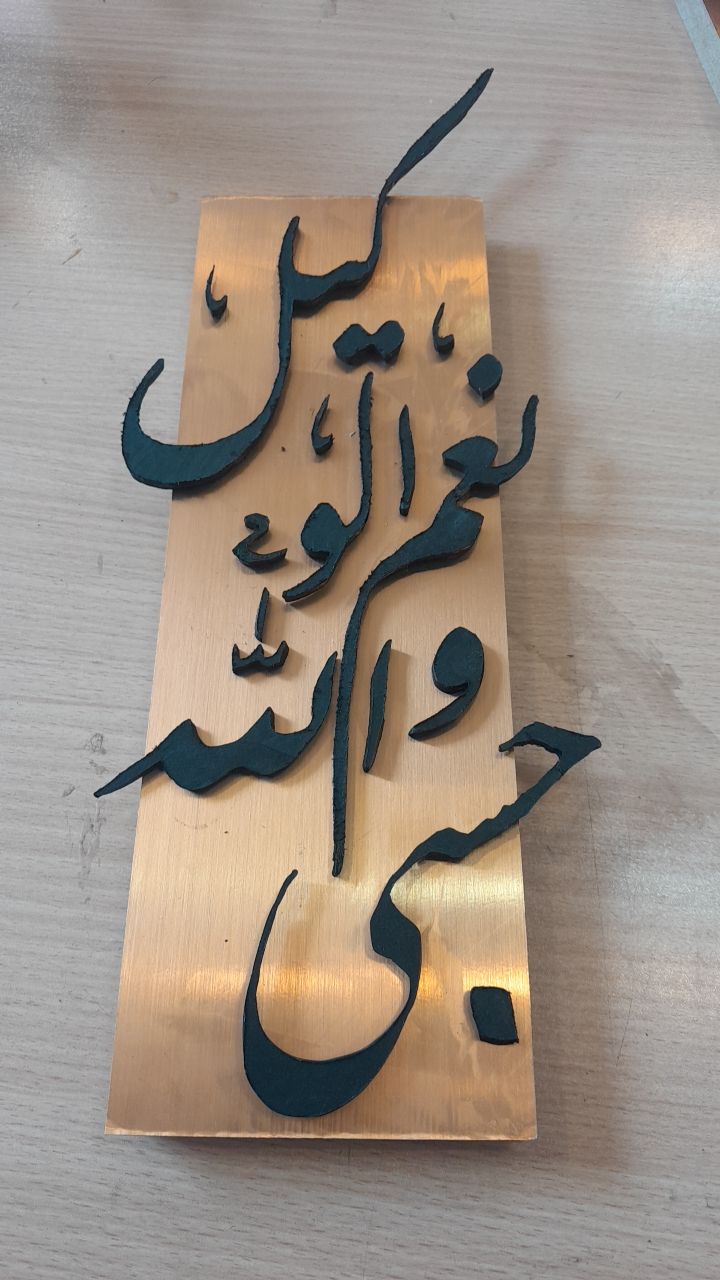 مهدی با صبر، دقت و هنری ستودنی، جملهی روحنواز «حسبی الله و نعم الوکیل» را با دستهای خودش و از دل ایمانش تراشید؛ جملهای که سالهاست مرهم دلهای مؤمنان و پناهگاه جانهای خسته است.