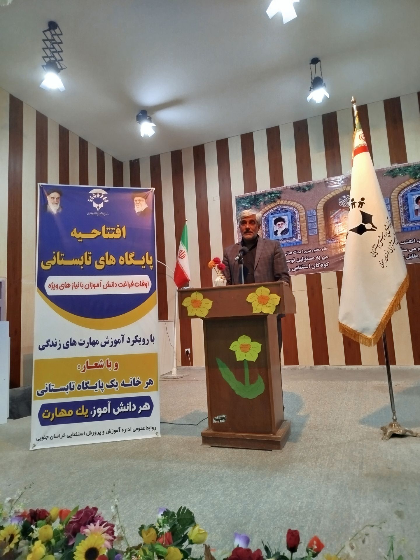 به گزارش روابط عمومی آموزش و پرورش استثنایی استان خراسان جنوبی؛  آیین افتتاحیه ی پایگاه های تابستانی اوقات فراغت دانش آموزان با نیازهای ویژه امروز چهارشنبه ۱۸ تیرماه در مدرسه تدبیر شهرستان بیرجندبا حضور رئیس آموزش و پرورش استثنایی استان ،معاون و تعدادی از کارشناسان و رئیس اداره فرهنگی،هنری،اردوها و فضای پرورشی اداره کل آموزش و پرورش استان ،مدیران ،معاونین مدارس،دانش آموزان و اولیای دانش‌آموزان برگزار گردید.