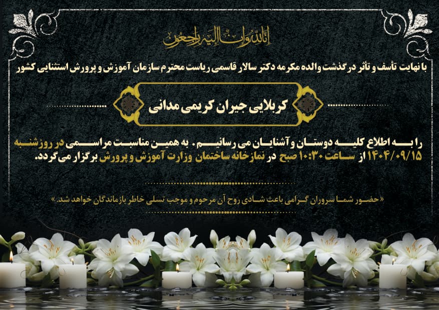 اطلاعیه/ مراسم یادبود والده مکرمه دکتر سالار قاسمی ریاست محترم سازمان آموزش‌وپرورش استثنایی کشور