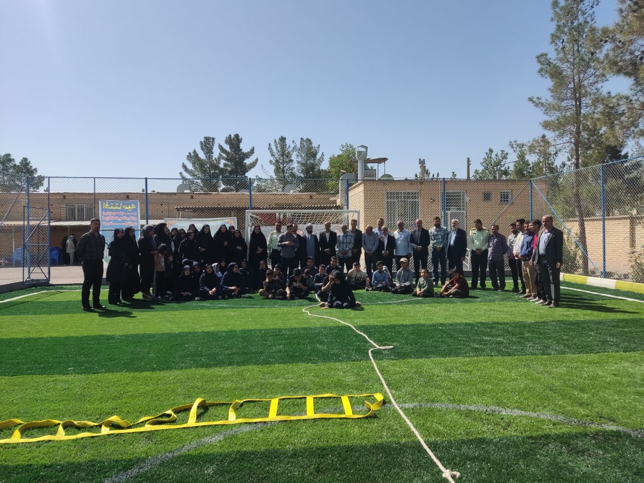 افتتاحیه زمین چمن مصنوعی آموزشگاه با نیاز ویژه حاجیه خانم مکتبی شهرستان نائین:
