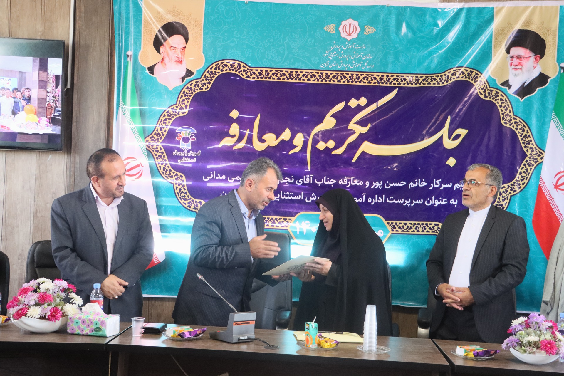 در این مراسم جناب آقای نجم الدین کریمی مدانی با حکم حسنعلی اصغری مدیرکل آموزش و پرورش استان به عنوان سرپرست اداره استثنایی منصوب گردید، جلسه تکریم و معارفه با حضور پورعباسی مدیر کل نوسازی، حجت الاسلام علی عمران رضایی دبیر قرارگاه جهادی نهضت توسعه عدالت، معاون سواد آموزی اداره کل، جمعی از خیرین مدرسه ساز و مدرسه یار،مدیران مدارس و مراکزجامع ، پیشکسوتان حوضه آموزش و کارشناسان در سالن اجلاس اداره آموزش و پرورش استثنایی برگزار گردید.