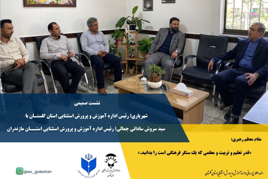 به گزارش واحد اطلاع رسانی اداره آموزش و پرورش استثنایی استان گلستان؛ در راستای تقویت همکاری‌های دوجانبه و تبادل دانش و تجربیات موفق در حوزه آموزش دانش‌آموزان با نیازهای ویژه، نشست صمیمی میان شهریاری، رئیس اداره آموزش و پرورش استثنایی استان گلستان و سید سروش ساداتی جمالی، رئیس اداره آموزش و پرورش استثنایی استان مازندران برگزار شد.